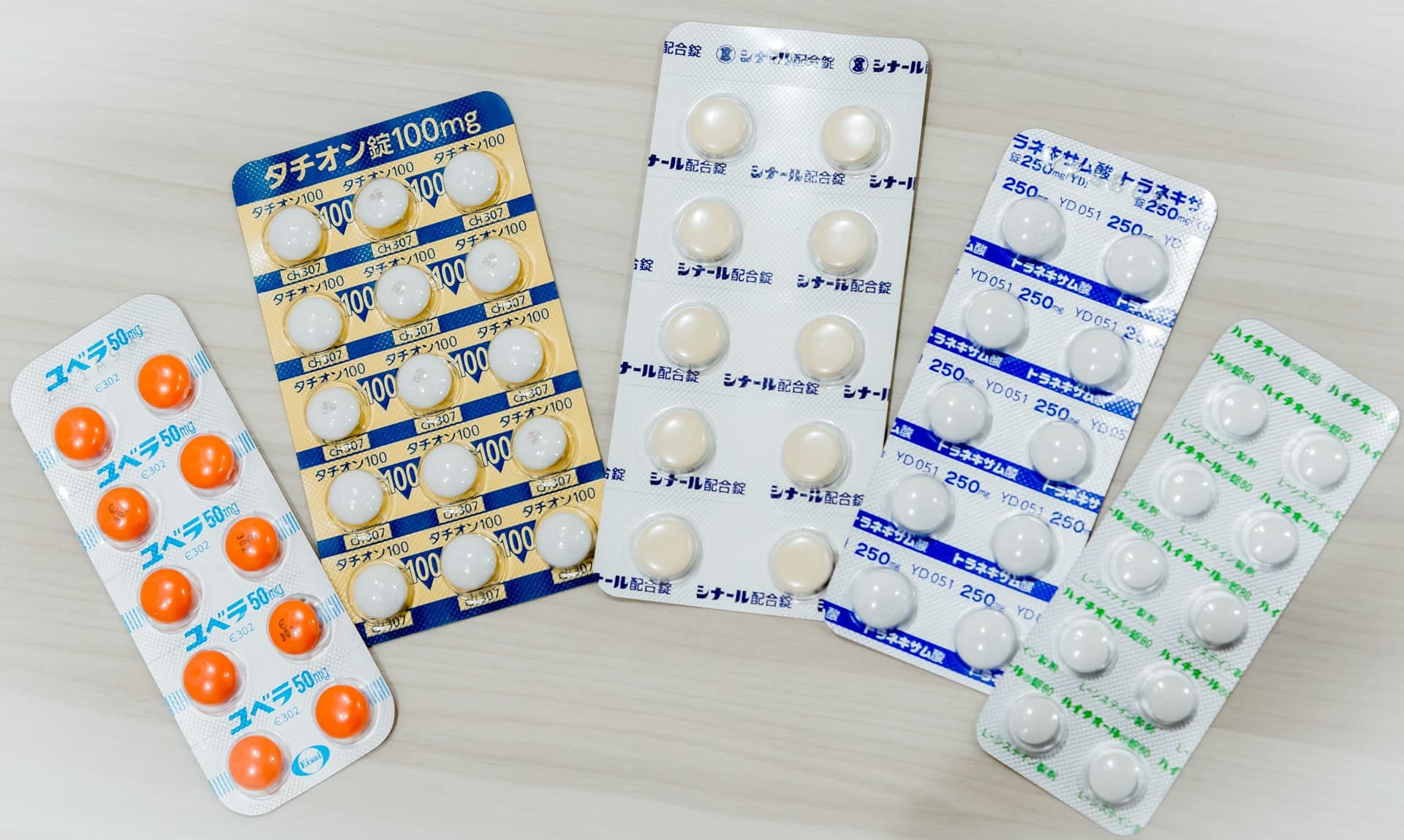 内服薬は、トラネキサム酸・シナール・ユベラ・ハイチオール・ビタダンの中からお選びいただけます。
