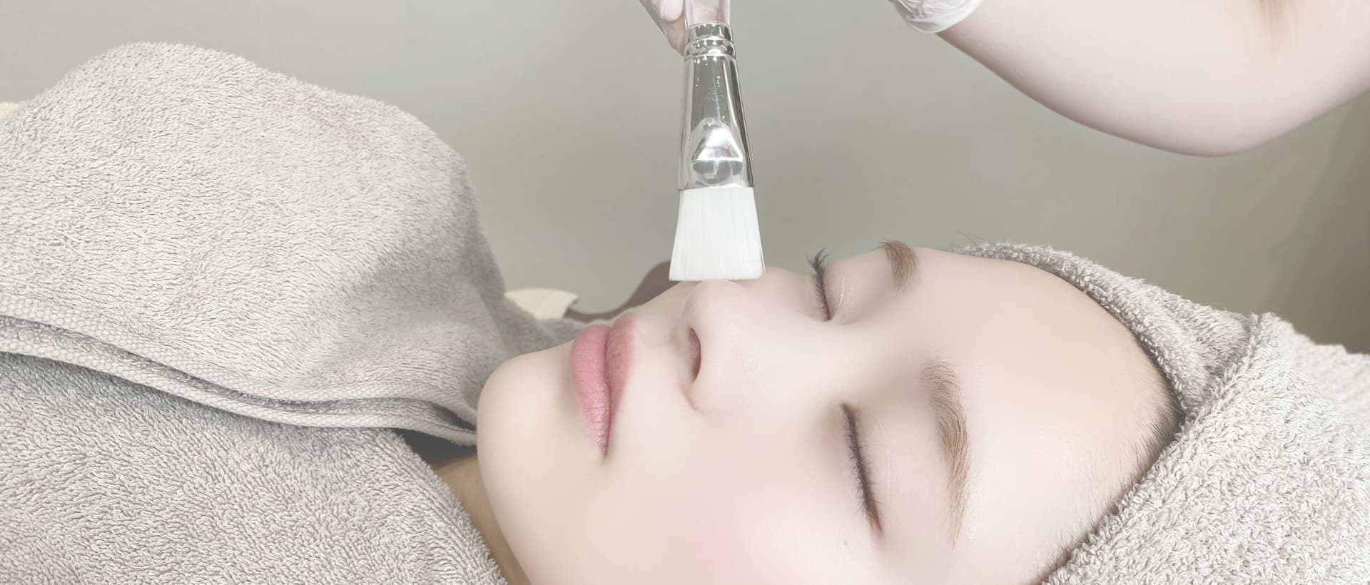 ハケでグリコール酸ピーリング材を塗布します。お肌の状態を確認しながら約5分放置し、最後に中和・拭き取りを行い終了となります。