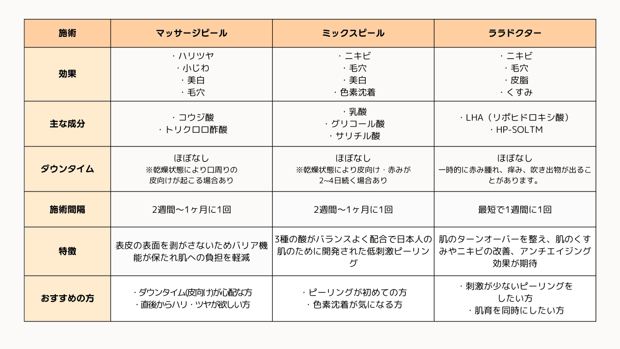 第5世代低刺激ピーリングとして注目される医療機関専用に開発された最新ピーリング施術です。 ララピールと同じLHA(リポヒドロキシ酸)を配合し、肌にゆっくりと浸透し角質をやさしく取り除き、肌を正常化へと導きます。