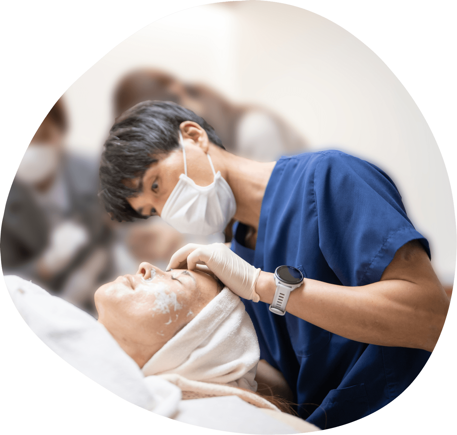 私たちはお客様のお悩みや原因、症状に合わせて機械やチップ、薬剤などを個々で選択してご提供しております。たるみ治療や注入治療では必ずデザイニングを行い、お客様と確認しながら施術を進めていきます。